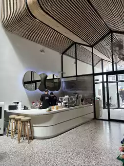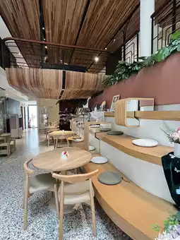 This cafe has an amazing vibe, decorated in a warm, minimalist style with a touch of Japanese coziness. Every corner is photogenic! No extra lighting required. The natural light shines beautifully from every angle.