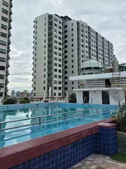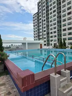 The hotel has 16 floors, towering like a true heyday hotel. The room we booked was a two-bedroom unit that could accommodate four people, with one bathroom and a generous amount of space. 🌬️🌃 The 16th floor is... the swimming pool. 🏊🏻♀️