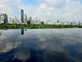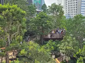 A large rooftop garden area of approximately 7 rai, considered one of the largest in Bangkok, is located within the Dusit Central Park project on the rooftop connecting Silom and Rama IV.
