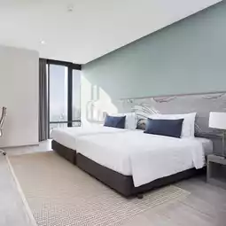 🏨 The hotel's atmosphere emphasizes a minimalist-modern tone with soothing, light colors. The rooms are spacious and clean, with a work desk and a large, comfortable bed. 🛏️ The view from the window overlooks Ari's tall buildings and trees. A whole new level of visual comfort! 🌇