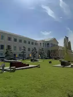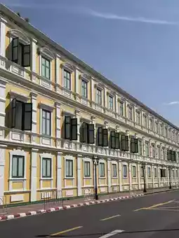 Today, we didn't enter the Grand Palace, so we just walked around and took photos near the Ministry of Defense. The yellow building is so vibrant 🏫, and we managed to take lots of pictures. Nearby is the Bangkok City Pillar Shrine, so we stopped by to pay our respects.