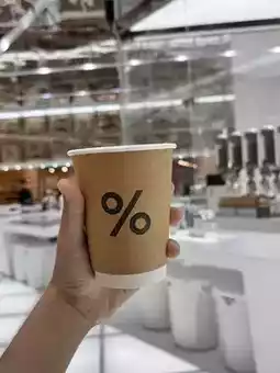 For true coffee enthusiasts, % Arabica is a must-know name. This famous coffee shop from Kyoto, Japan, is renowned for its meticulous attention to detail in every step. The first branch in Thailand is located at ICONSIAM, G Floor, ICONLUXE zone, by the Chao Phraya River. The shop features a minimalist, clean, and elegant white design with the iconic % logo prominently displayed in the center, bringing a slice of Japan to Bangkok. 🗼