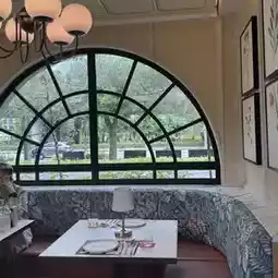 ตัวร้านออกแบบเป็นสไตล์ Glass House โปร่ง โล่ง สบายตา ตกแต่งโทนสีอบอุ่น มีสวนสวยด้านนอก สร้างบรรยากาศโรแมนติก ถ่ายรูปสวยปังทุกมุมทั้งกลางวันและกลางคืน
