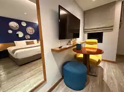 The lobby is modern and minimalist, and the staff greet you with friendly smiles 😊. There's a welcome drink, a work area, a snooker table, and plenty of beautiful photo spots. Upon entering the room, you'll be greeted by a warm, comfortable bed, a relaxing corner for lounging, a large TV, smooth internet, and Netflix. 📺✨ It's the perfect place to relax in the city that never sleeps. 👌
