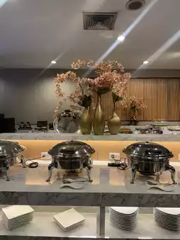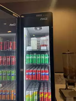 The interior is bright, airy, and comfortable, with comfortable sofas, work desks, and plenty of power outlets. It's perfect for chilling out or working. 🍵 There's a wide selection of food and drinks, including rice, snacks, bakery items, fresh coffee, and unlimited alcoholic beverages. The staff is friendly and the bathrooms are clean.