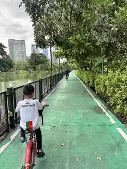 For a one-day trip to Suan Rot Fai, we took the BTS Skytrain to Mo Chit Station and exited at Exit 1. From there, there's a free shuttle bus to Wachirabenchatat Park, with a trip every half hour. Then, we walked back about 600 meters to rent bicycles from Uncle's shop. Children are 30 baht, and adults with seats in the back are 50 baht. A single park, but you can spend the whole day. Besides the great atmosphere, there are also places to unwind and learn, such as paddling a duck boat in the water, visiting the Bangkok Butterfly and Insectarium, a playground, a flower garden, and a pet zone. You can lay down a mat, eat, and rest, perfect for a picnic. The nature here is amazing. Visiting here is like taking a vacation, truly relaxing in the atmosphere. #Vachirabenchatat Park #Rotfai Park Coordinates: https://maps.google.com/maps/place//data=!4m2!3m1!1s0x30e29c42b1890f4f:0x1c8ae99dcdc9512?entry=s&sa=X&ved=2ahUKEwics_P4-MGQAxWuoGMGHV-EKocQ4kB6BAgDEAA