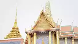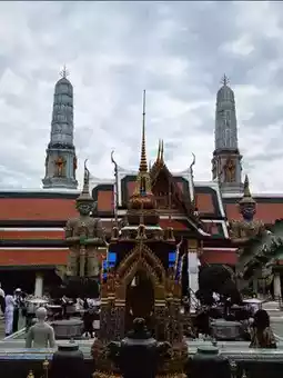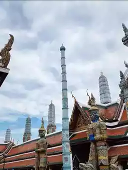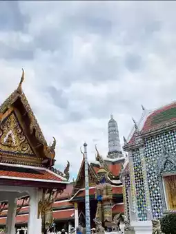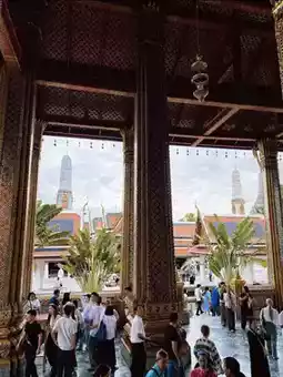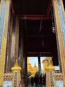 ✔️The corridor of the Temple of the Emerald Buddha (golden pillars + blue sky background is stunning)