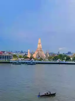 You can see Wat Arun Ratchawararam directly across the street, especially when the last rays of the day fall on the prang. It's a sight so beautiful and peaceful that it's almost indescribable. It's like time has truly stood still.