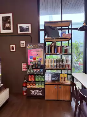 The café has a cozy vibe with plenty of seating, great for chilling or getting some work done. 💻🌿