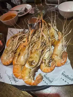 Ready for a wild foodie ride in Bangkok? 🤩 Skip the basic tourist stops and dive into local flavor that’s straight-up legendary! Peep this: a jumbo prawn popping off on your plate at a funky restaurant, with the neon Bangkok skyline adding major aesthetic vibes. 🦐🏙️ Soo good, you’ll wanna post it twice!