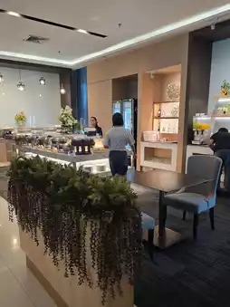 A comfortable lounge at Don Mueang Airport. A wide variety of drinks and snacks. Excellent service and very quiet.