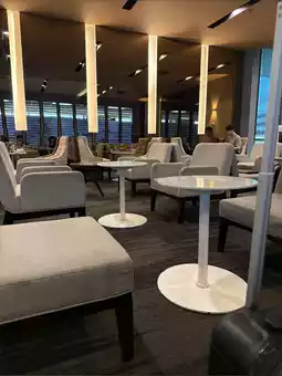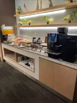 Very clean. A wide variety of food and drinks. Self-serve drinks are available. Access is available with a priority pass. Friendly staff and attentive customer service.