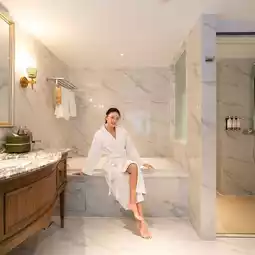 The rooms here are elegantly decorated, spacious, and feature private balconies with beautiful garden views. Highlights include a focus on wellness and relaxation, including: