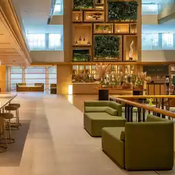 🌿 A luxurious hotel with a peaceful, shady atmosphere, perfect for health-conscious guests in the heart of the city ✨