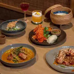 🍽️ Khum Hom (Kham Hom), the hotel's restaurant where we ate our evening meal. The fusion Thai cuisine offers a tantalizing array of flavors, each dish bursting with flavor and spiciness. Every dish is designed and created by Chef Ian, Iron Chef Thailand. ✨