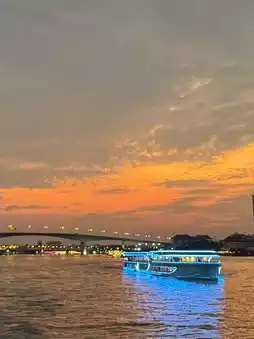 In the evening, we went to ASIATIQUE and boarded the White Orchid River Cruise during sunset. We enjoyed a buffet dinner while admiring the sunset 🌆. The gentle breeze made the experience incredibly relaxing 😌.