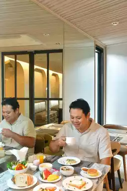 Away Bangkok Sukhumvit 20 is a trendy new accommodation in the Sukhumvit area with a concept of escaping daily life. It’s the latest opening under the Cross group, featuring a modern, minimalistic design in warm tones. Every corner is crafted to be simple yet balanced. There are four room types - Superior Room, Deluxe Room, Deluxe Double Room, Suite, and Family Suite. I stayed in the Deluxe Double Room; it was spacious with simple decor that felt soothing and comfortable to the eyes, including a balcony and a chill chair. The bed was soft and provided a comfortable sleep, with all essential amenities included. Facilities include a fitness center and a rooftop pool with stunning views of city buildings and greenery in the heart of Bangkok. The Twenty / Twenty-Two Bar & Restaurant serves all-day dining with a diverse breakfast buffet and special order options—they're delicious. For other meals, there's an ala carte menu offering both Thai and international dishes. For example, the chicken green curry with roti is fantastic and highly recommended. There's also coffee, drinks, and dessert. Plus, the hotel offers free tuk-tuk service to Sukhumvit 22 near BTS Asoke, making it easy to reach nearby malls like Terminal 21, Emporium, EmQuartier, and Emsphere for convenient dining and shopping options.