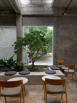 📍 Atmosphere: The cafe is a modern exposed concrete building with large glass windows and high ceilings, allowing for beautiful natural light. 🌤️ Surrounded by large trees, a lawn, and shaded outdoor seating, it's perfect for kids to run around and play. The cafe is also pet-friendly. 🐶💚