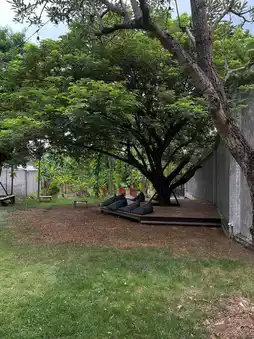 • There's an indoor area for working or relaxing in peace, and an outdoor area for the kids to play.