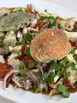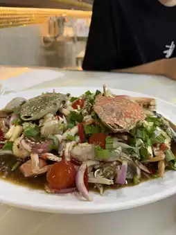 Krot Yum Huai Khwang offers squid salad, shrimp salad, mixed salad, and our signature salad recipe. 🌿🦐