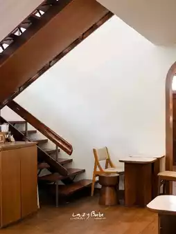 The shop is a two-story house with beautiful, cozy, and warm decor.