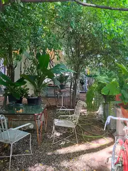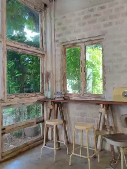 📝: The atmosphere is truly wonderful, super shady, perfect for chilling out and taking beautiful photos. They offer food, desserts, and drinks. The coffee is delicious. Relax and take beautiful photos. There's both indoor and outdoor seating, and parking is available in front of the shop for several cars. Highly recommended if you're looking for a beautiful cafe with a great atmosphere.