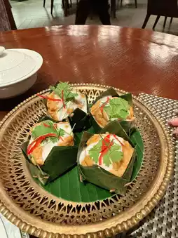 β¨ The restaurant boasts a luxurious, serene ambiance with wood and gold tones, exuding a modern Thai charm, ideal for special occasions or hosting international guests.