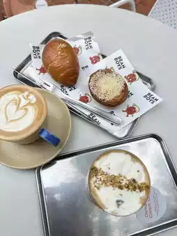 Recommended bakery items include the matcha tart and shio bread. 🍞