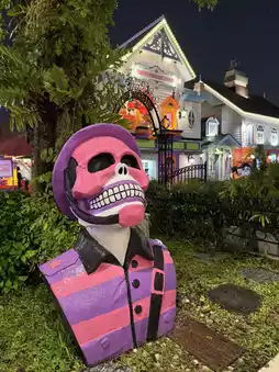 🔥Spooky Town is another recommended Halloween destination located within Chocolate Ville. This zone features a haunted house, a haunted town, ghost pumpkins, jack-o-lanterns, skeletons, and a photo corner for kids.