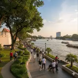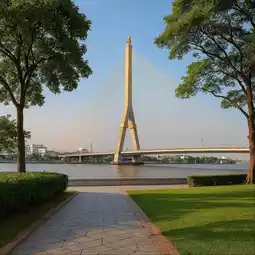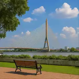 Santichaiprakan Park is a green space perfect for relaxation. Stroll along the Chao Phraya River and enjoy the stunning views of the Rama VIII Bridge spanning the river. The sunset is especially spectacular, with golden light reflecting off the water's surface, creating a romantic and tranquil atmosphere. Perfect for taking photos or simply relaxing in the cool breeze.