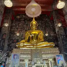 Wat Suthat is an ancient and important temple in the heart of Bangkok, located near the Giant Swing. It stands out with its large, beautiful, and tranquil Ubosot (ordination hall). The temple's architecture is exquisitely designed in the early Rattanakosin period, steeped in artistic and historical value.