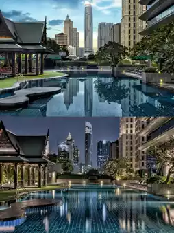 The infinity pool on the 35th floor is like an emerald in the concrete jungle! I recommend going around 6 PM to avoid the harsh sun and catch the golden sunset. The Bali-style pavilion by the pool is highly sought after, so be sure to ask the butler to reserve it.