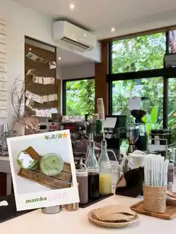 Tucked away in the chill Srinakarin zone, MiVana Organic Forest Coffee is a total vibe! This glasshouse café feels like a warm hug from nature—seriously, the interior is all wooden walls covered in gorgeous landscape photos, and the greenery peeking in from every window is just next-level 🌿✨.