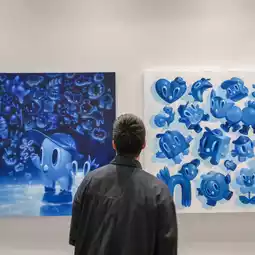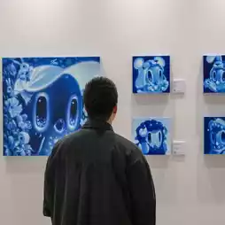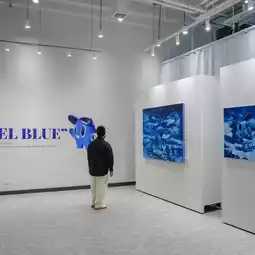The “FEEL BLUE” exhibition invites us to understand “loneliness” as a part of being human, rather than viewing it as something terrifying. The artist uses the color blue and navy as his primary language of communication. For the artist, “blue” is both a comforting space and an emotional cage, a color that immerses us in emotions while also embracing them to prevent them from breaking.