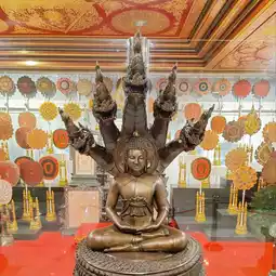 Wat Paknam Phasi Charoen is a third-class royal temple located in Phasi Charoen District, Bangkok. This ancient temple dates back to the mid-Ayutthaya period. It is renowned for Phra Mongkolthepmuni (Luang Por Sodh Candasaro), a former abbot known for propagating the Dhammakaya meditation technique. The temple features a massive bronze Buddha statue in a meditative posture, with a width of 40 meters and a height of 69 meters, equivalent to a 20-story building. This statue was completed in 2021. Additionally, the temple houses the Great Maha Ratchamongkol Pagoda, a stunning five-story glass pagoda that is beautifully decorated and enshrines sacred relics of the Buddha. The temple is a popular attraction for international visitors. Anyone passing by should make it a point to visit this magnificent site.