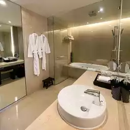 The Okura Prestige is the height of luxury. I travelled with my partner and we absolutely loved the experience. The rooms are very big and we had a beautiful view of the city of Bangkok. The rooms come with so many small touches like a traditional tea leaf set, a night time turn down service with ice and water, a heated toilet seat and Japanese robes. Huge room with superb facilities and an amazing view of the city. arrival in Bangkok before heading to other parts of Thailand and we are so glad we did. The hotel is perfectly located for a first timer in Bangkok, with the BTS Skytrain connected to the hotel giving very quick and air-con public transport to most important sights. Hotel rooms were big, clean and we had a super view on the 30th floor. The bed is very comfortable and we slept (missing jet lag) amazingly from the first night. Breakfast was delicious and varied. Infinity pool on the 25th veranda had awesome views of the city. Service by all staff during our stay was warm and hospitable.