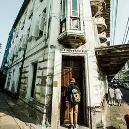 The Mustang Blue Cafe and Restaurant is located in an old building that is more than a hundred years old. It is a colonial architecture, raw and very cool. For those who like taking pictures, the shop is beautiful and you can take great pictures from every angle. The food is delicious, whether it's roast chicken or red velvet cheesecake. I recommend you to try it. #cafe #cafe review #secret location #waiting for the day to travel #historicculture #check in Bangkok