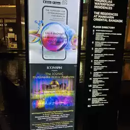 Not to be missed! It is a water fountain show with multimedia features right outside Iconsiam. You will have to go to the river side to be able to watch this show. Else, you can follow my idea of watching it from my room window. I had a panoramic room view at the Millennium Hilton. I was able to watch the water fountain show very clearly. This show will starts at 7pm (Monday to Thursday) and 6.30pm & 8pm on weekends and Public holiday. This is the longest multimedia water features in South East Asia.