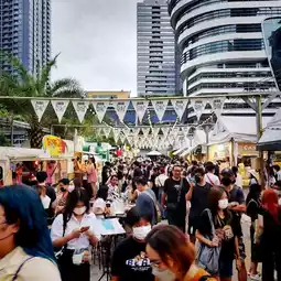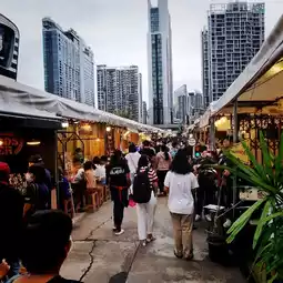 Jodd Fair is a night Market renamed by the previous Ratchada Train Market which is located right beside Rama 9 MRT Train Station. Although the name change and location, the night Market still retains its popular nightlife vibe with live music and an open air seating for diners to enjoy the band while having their dinner. Jodd Fairs sells several vintage old-school items such as denims, jackets, tartan shirts that are hard to find these days.