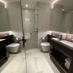 The staff are all very friendly and professional. The room is nice and comfortable. I like the couch which is very nice for us to lounge around at. Water pressure is good. Shower gel, shampoo and conditioner are provided from common bottles that are secured to the shower wall.