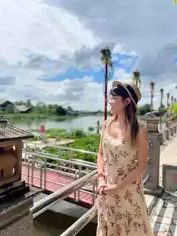 Located by the river, there are many street shops