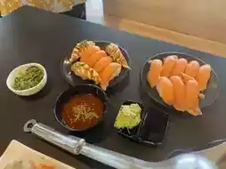 In the shop, there is a long counter in front of a long conveyor belt, each person has their own pot, and a group table with shared pots. There are many dishes on the conveyor belt to choose from. The meat lovers are full of black plates. Just pick them up and boil them. There are 3 types of soup to choose from: clear, thick, and tom yum. The quality of the food that I recently went to eat has improved a lot. Snacks such as sushi, rice balls, fried food, salads, desserts, ice cream, there are many new menus and they are always refilled. It's great.