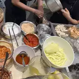 Today, I'm going to try Somtam Hoi Kraeng from Somtam Yum Zaap Madam K. I've tried this restaurant many times and it's delicious and satisfying. This time, I decided to introduce it to you. If you like it very spicy, not very spicy, or not spicy, or if you don't want chili, or if you want fish sauce, just tell the restaurant. They'll be happy to make it to your liking. The price is 80 baht.