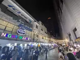 That is, Palladium, where clothes are gathered for sale at night. It is a night market with a relaxed style. Products are sold around Palladium. For choosing, there are quite a lot of products for sale all along the front. There are many designs of inexpensive fashion clothes. There are many styles for you to walk around and choose from all night long. There are many products. If you are free, come and play in the evening. I assure you that there will be a lot of products for everyone to choose from. It is more crowded.
