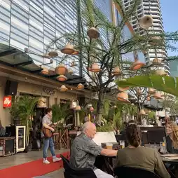 We stopped by to have a light dinner at Viva Aviv River. The restaurant is located by the Chao Phraya River. The view is beautiful. The food is delicious and international, especially the pizza. The dough is freshly made and very delicious. The atmosphere is good. I recommend coming in the evening to see the sunset. It's great. At night, it becomes a pub-bar. Many foreigners come to eat. There is also live music to listen to. It's very relaxing. The restaurant is in the mall. Parking is convenient.