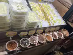 The types of food are both Thai, fusion, or Western. Here, they are divided into zones, such as food 🥝🥨🥯🍔🍳🍞🥓🌭🍕🍖🍗🍟🧆🥘🥗🥙🥪 desserts 🍦🍨🍧🍡🧁🍰🍮🍪🍩🍿🍬 and clothing zones, including nail salons, hair salons, glasses shops, and telephones, etc.