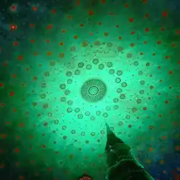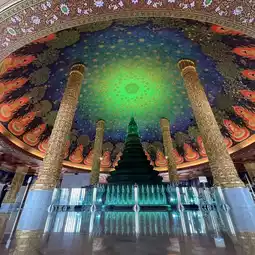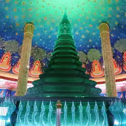 The starry sky-like ceiling painting depicting the life of Buddha is combined with the emerald stupa, making this a very fantastical temple🛕✨