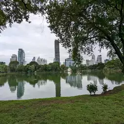 Lumpini Park is in the middle of the city, yet nature remains. Water monitor lizards over 1m long roam around. Great for a walk. A large park with a gym.