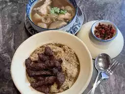 Currently, there is a promotion set for only 99 baht, which includes a single dish and a refillable chrysanthemum drink. There is also a promotion for food + soup and a refillable chrysanthemum drink for 149 baht. It is a great value in a place in the middle of the city like this.