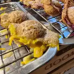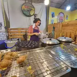 Followed from social online, with a famous Khanom Krok shop with Tabak filling that both Thais and foreigners are continuously posting content about. This shop will be Khanom Krok with a lot of filling until it overflows. There are many fillings such as pumpkin, purple sweet potato, taro. The taste is delicious, not too sweet, soft, the dough is fragrant. Eating it while it's hot is the finale. Up on the list of favorite Khanom Krok shops. Anyone who likes to eat Khanom Krok must come and try. #BangkokTravel #RecommendDeliciousRestaurant #joddfairs